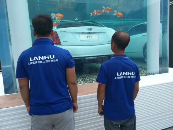 據了解,此次卡迪拉克公司為了完美的展示新車的環保性能,經過幾輪甄選,最后確定由上海藍湖水族工程有限公司為他們量身打造這款極具挑戰性的魚缸,