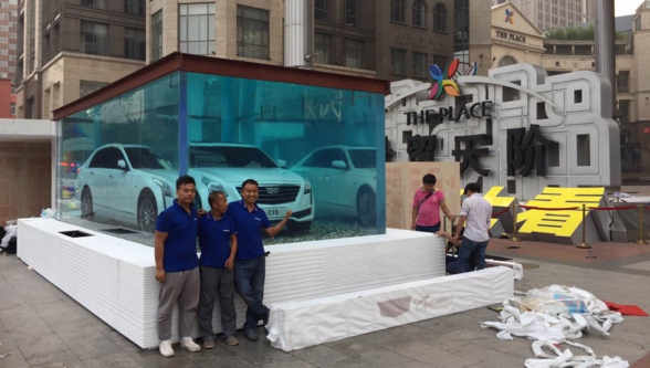上海藍湖水族工程有限公司負責人介紹稱,收到了凱迪拉克公司的訂單后。公司召集主要頂尖技術人員,通過分析客戶的切身需要,與展示時的各種安全移動與實地安裝的需求,并結合本公司專利生產技術,特打造了此款亞克力魚缸,我們所看到的魚缸使用的原材料為進口璐彩特,厚度為120mm,采用本體聚合無縫拼接技術,從澆鑄亞克力板材到魚缸拼接耗時一個多月的時間。在展覽的前一天,藍湖水族工程有限公司的安裝人員,根據展覽需要,在短時間內完場了活動現場的安裝與運轉調試,除了具備較高的安全性能,魚缸還配置了先進的循環過濾殺菌消毒維生系統,確保水質清澈、魚兒可以暢快呼吸,充分展現了凱迪拉克汽車所需要展示的“魚”與“車”共存的環保理念,才使大家觀賞到了這么震撼的水藝展。