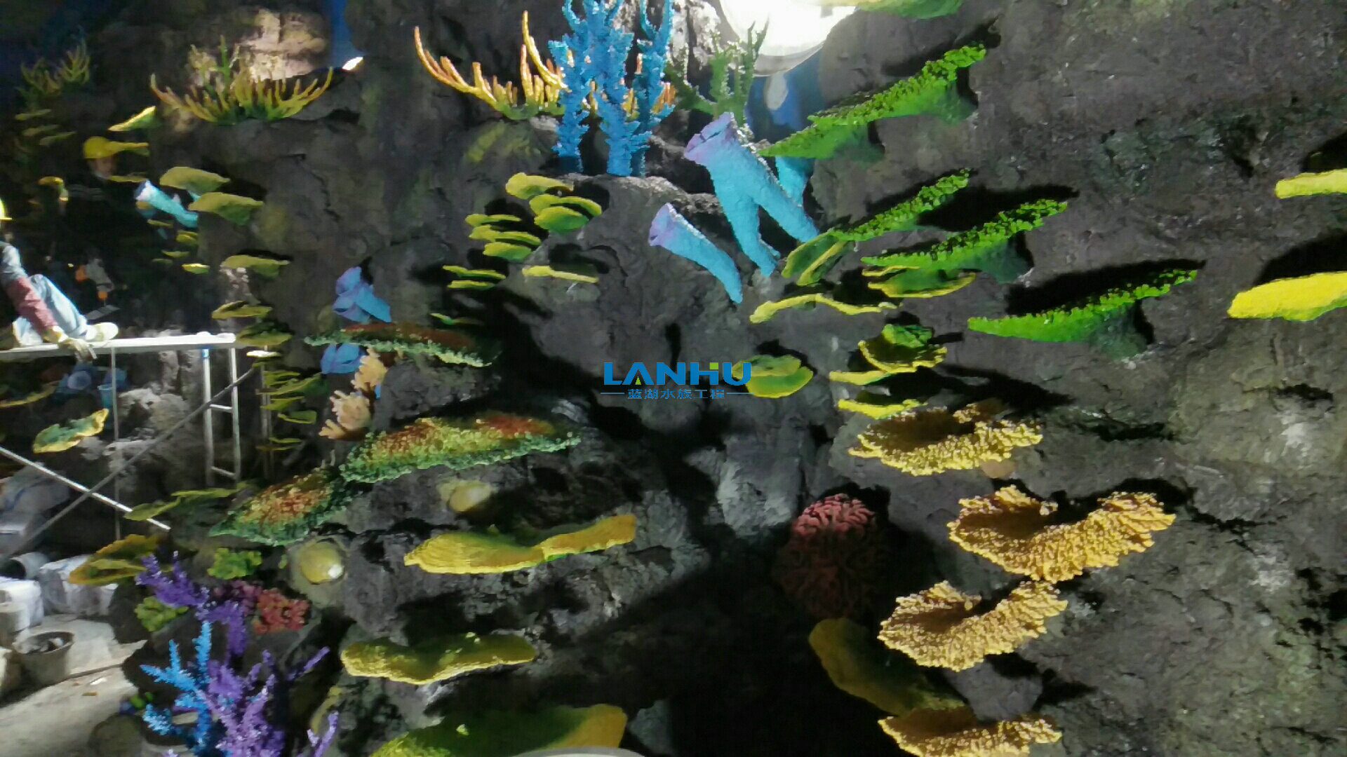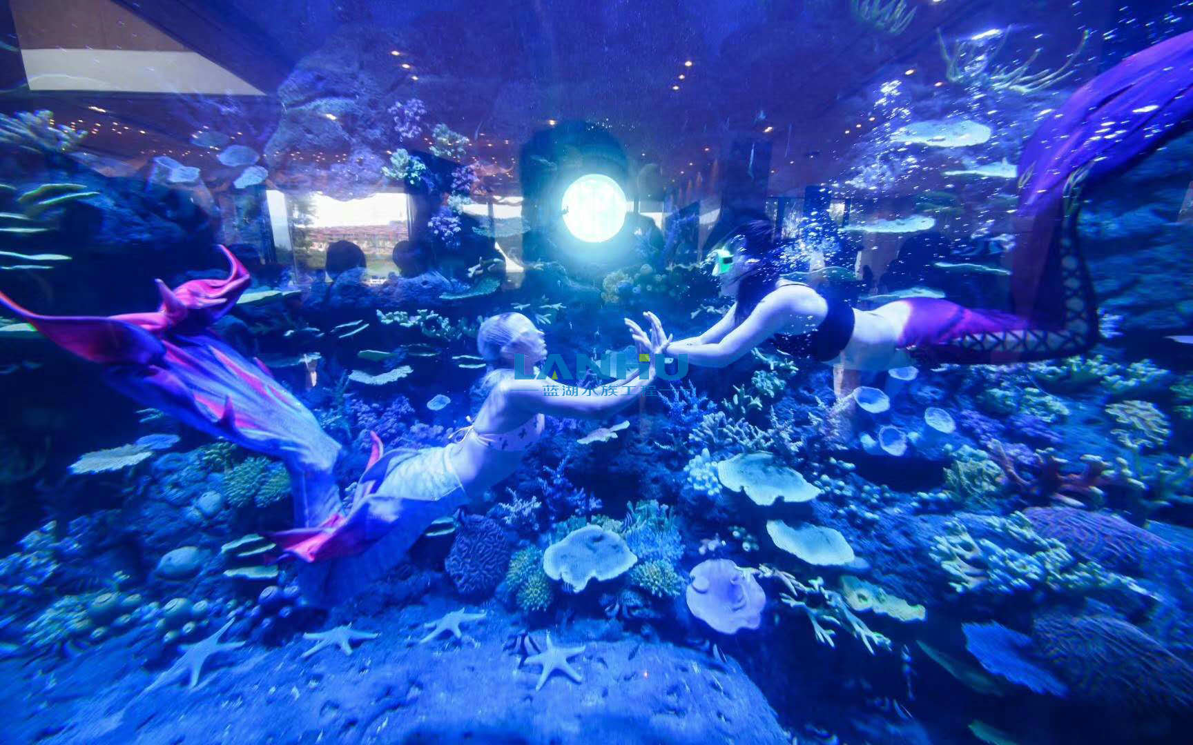 紫金山遠洋·山水海洋世界的亞克力有機玻璃、LSS維生系統、造景、燈光照明由上海藍湖水族工程有限公司承建,