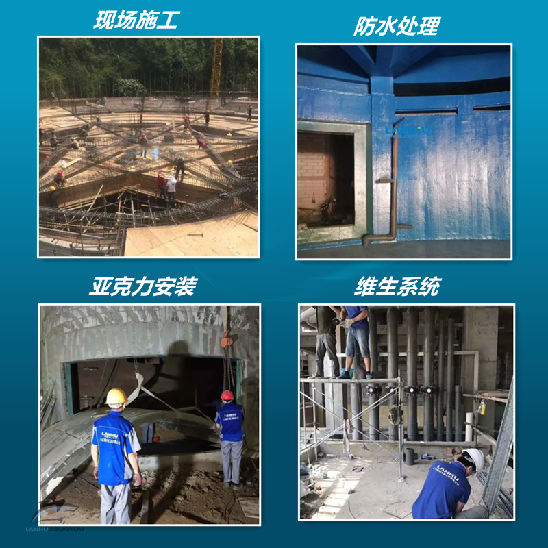 藍湖水族從管道預埋、防水處理、亞克力安裝到維生系統的安裝都嚴格執行行業標準