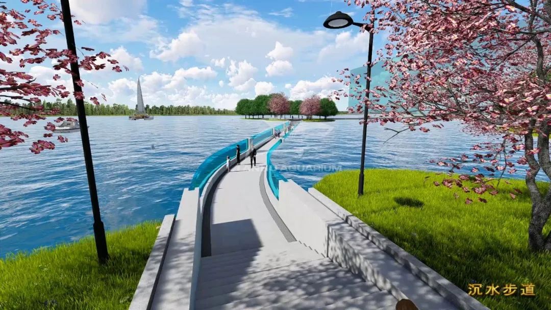 與水中靈動生物交疊、纏繞狀,形成漣漪水紋的變幻動態,為休閑場域注入靈動的氣息。