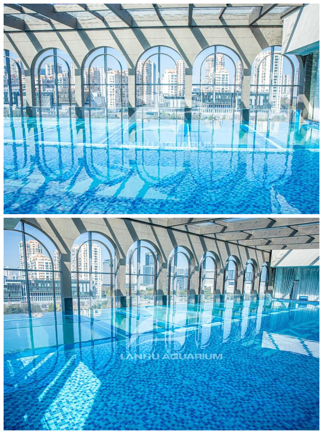 藍湖水族在材料操作的層面,用通透亞克力板材巧筑空中泳池,助力溫州的城市封面崛起。